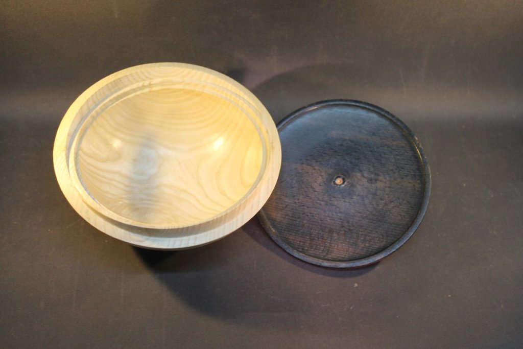 Dose in Schale aus Ahorn und gebeizter Esche