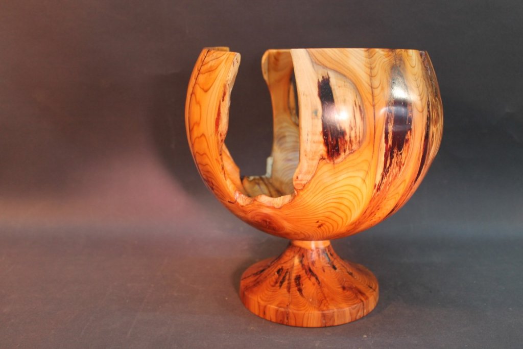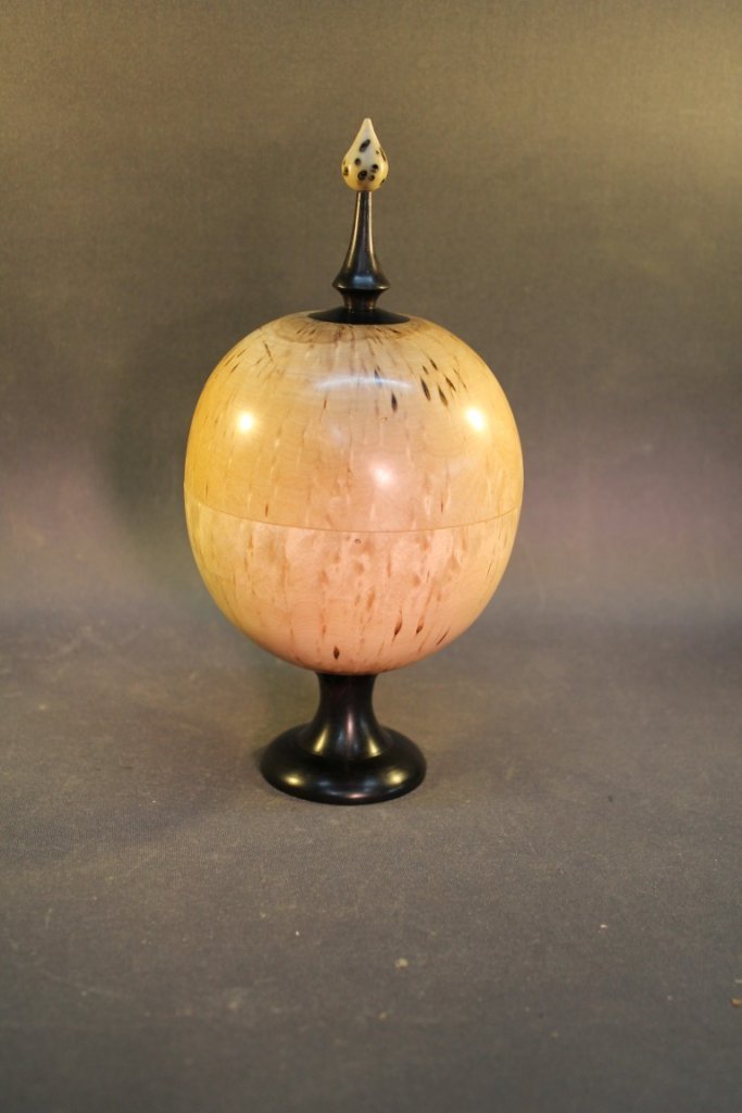 Kugeldose aus Eibe mit Sockel und Spitze aus Grenadill